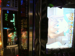 クレジット内のコインくらいは回そうと思っていたのですが、すぐ近くのエヴァがREG後500Gくらいで空いたので移動。